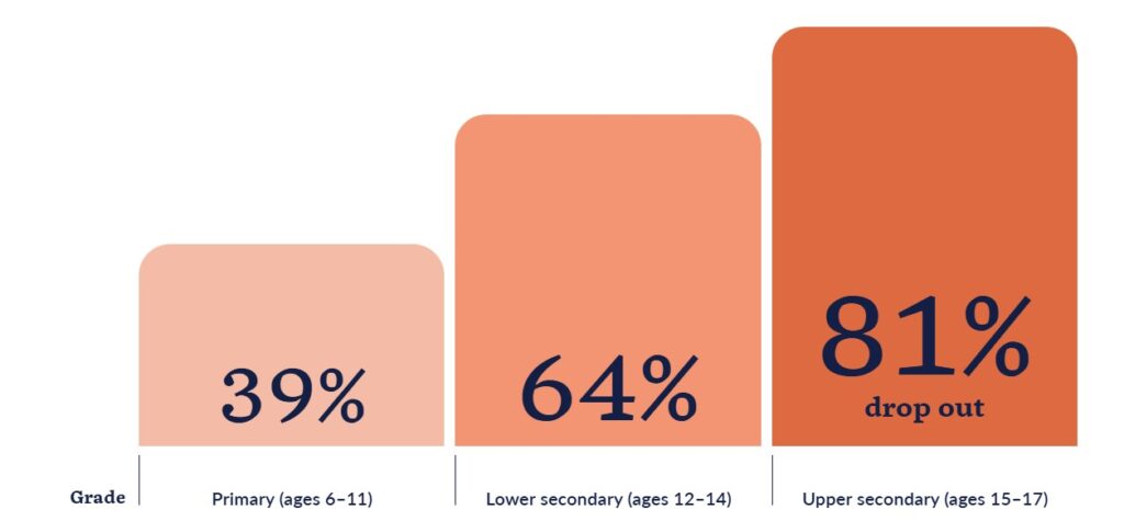 Women make up more than two-thirds of the world’s 796 million illiterate people. According to global statistics, just 39 percent of rural girls attend secondary school. This is far fewer than rural boys (45 percent), urban girls (59 percent) and urban boys (60 percent). At this moment, nearly 130 million girls are out of school. Even more are in school but not learning. That’s why “Educating Her” Nonprofit invests in girls’ education programs across countries so that all girls can access 12 years of quality education.